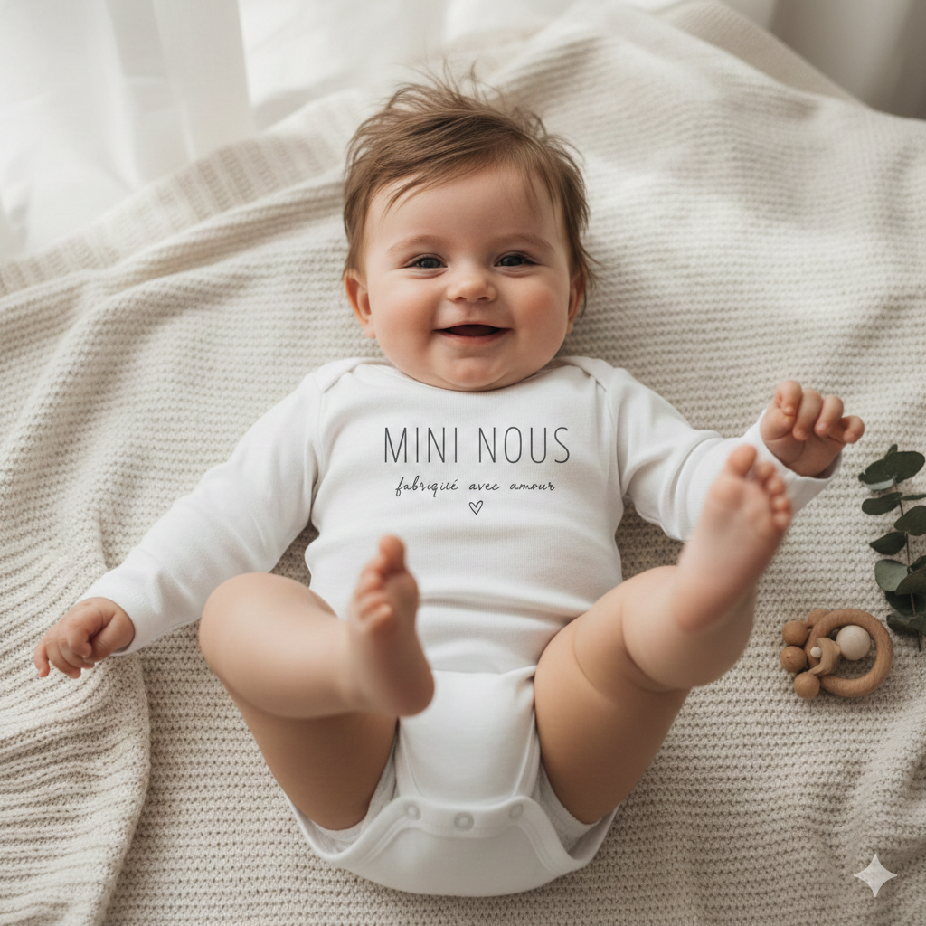 Tout a commencé par l'envie de célébrer les petits moments précieux de la vie. Parce que chaque bébé est unique, j'ai imaginé une collection de bodies à personnaliser, conçus avec douceur et une pointe d'humour.