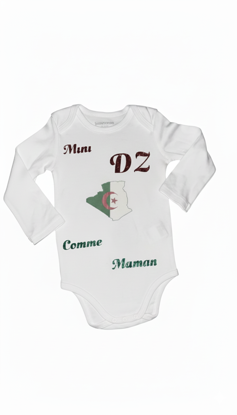 Célébrez les racines et la complicité familiale avec ce body unique, conçu pour les petits fiers de leurs origines. Alliant tendresse et identité, c’est le cadeau de naissance idéal ou la tenue parfaite pour un clin d'œil spécial à maman.